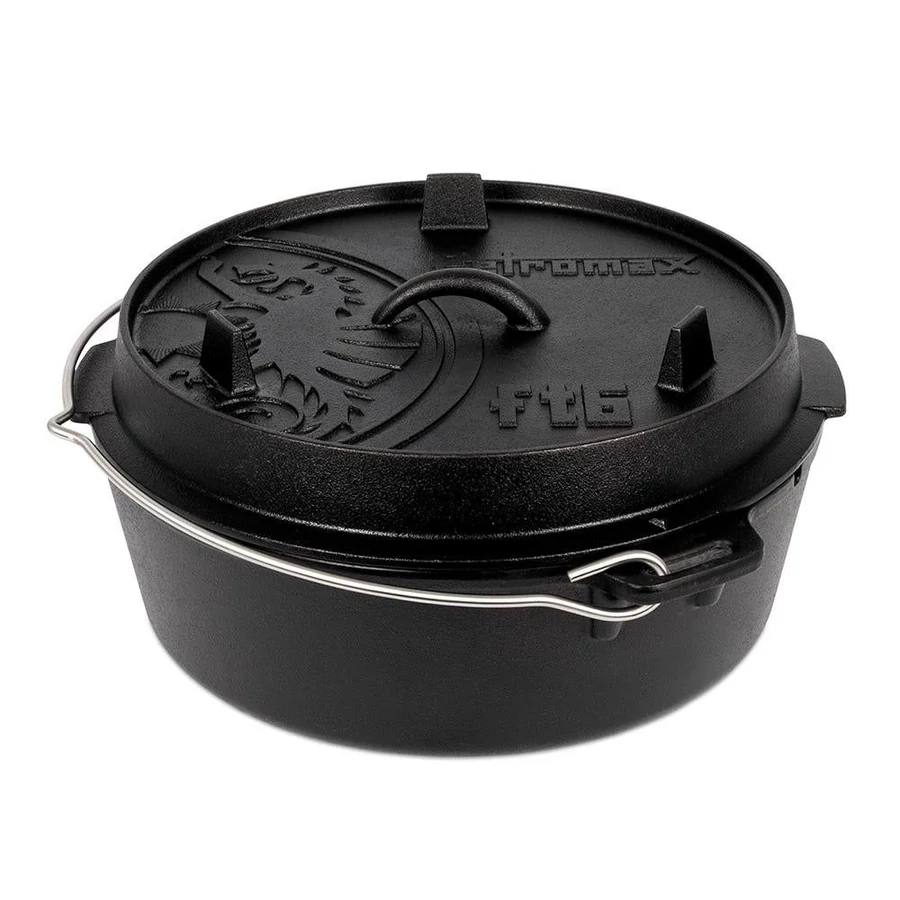 A Petromax® FT6-T öntöttvas lábas kapacitása 6,1 liter, amely ideális választás 4-8 fős étkezésekhez. Kiválóan alkalmas levesek, pörköltek, raguk és egyéb ételek készítésére, mind a szabadban, mind a konyhában.