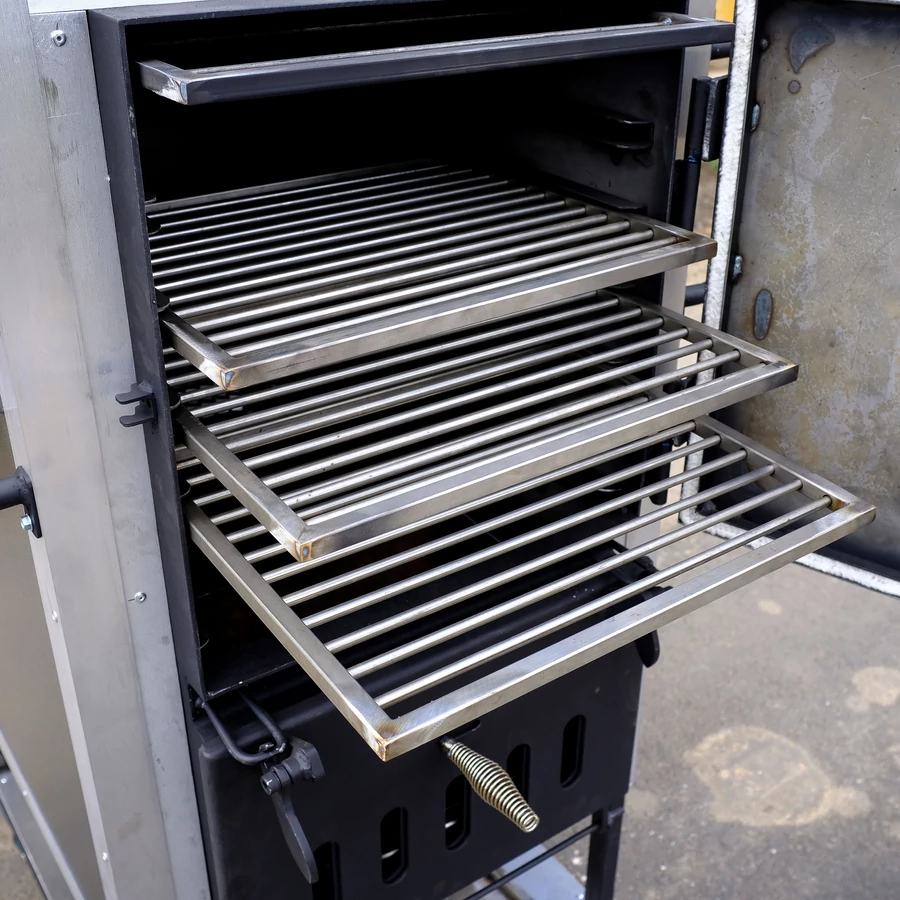 - 1x szénacél rudazatos rács lógatva sütéshez