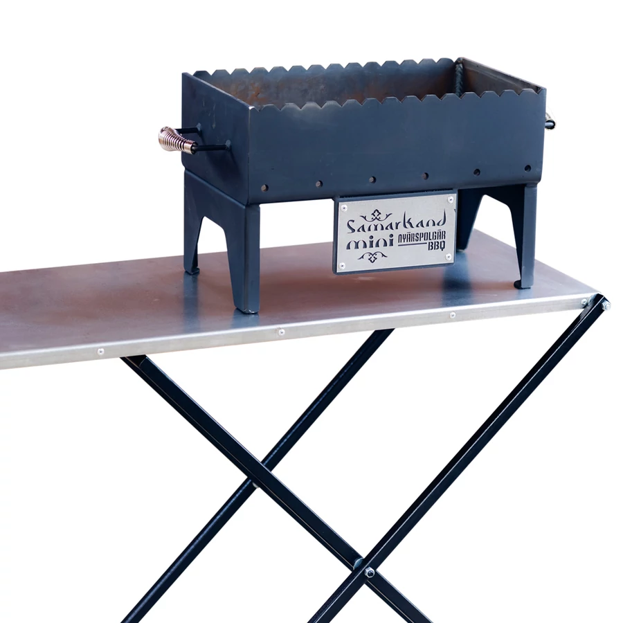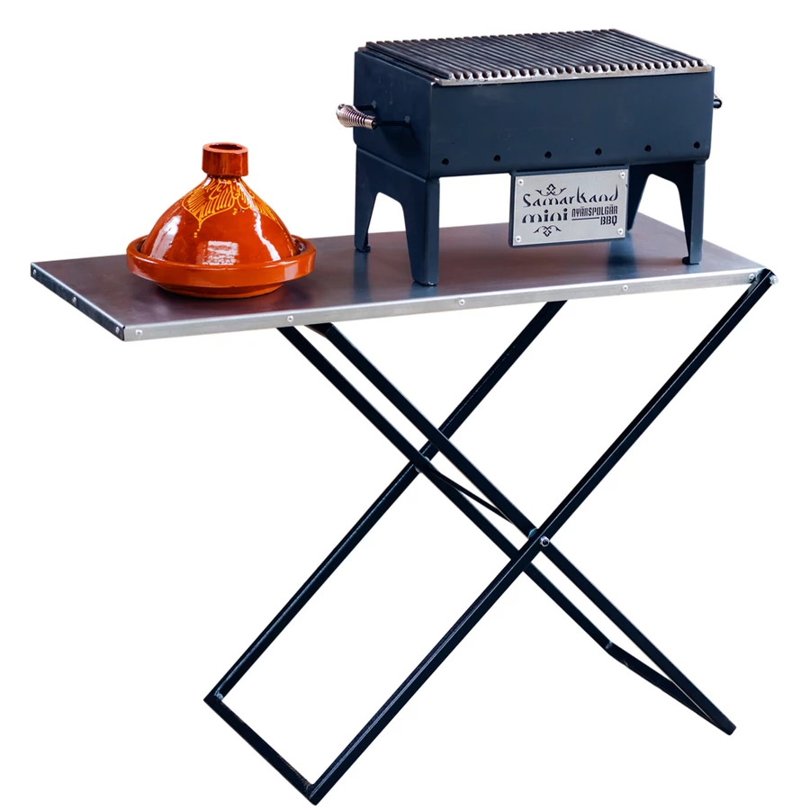 Összecsukható, így könnyen szállítható, mégis nagyon masszív darab. A 20 kg súlyú Samarkand Mini Grill, valamint a Samarkand Midi Grill is nagy biztonsággal használható rajta.