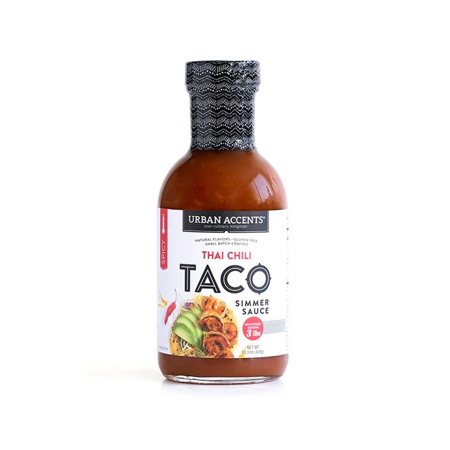 Az Urban Accents' Thai Chili Taco simmer Sauce prémium megoldást kínál nagyon sokféle fogás befejező műveletéhez.