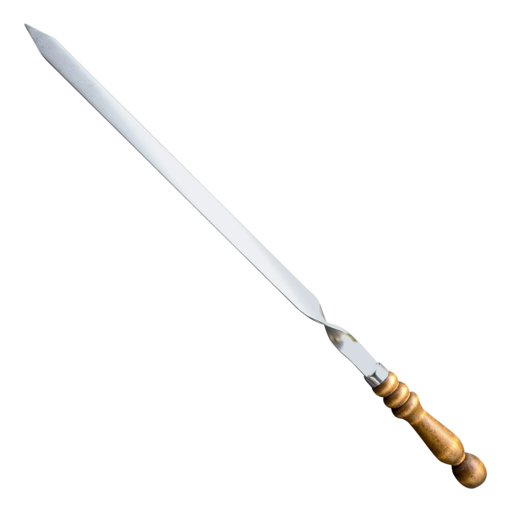 Rozsdamentes acél grillnyársak, fanyéllel.