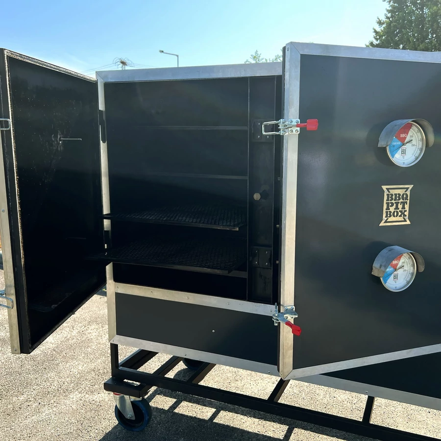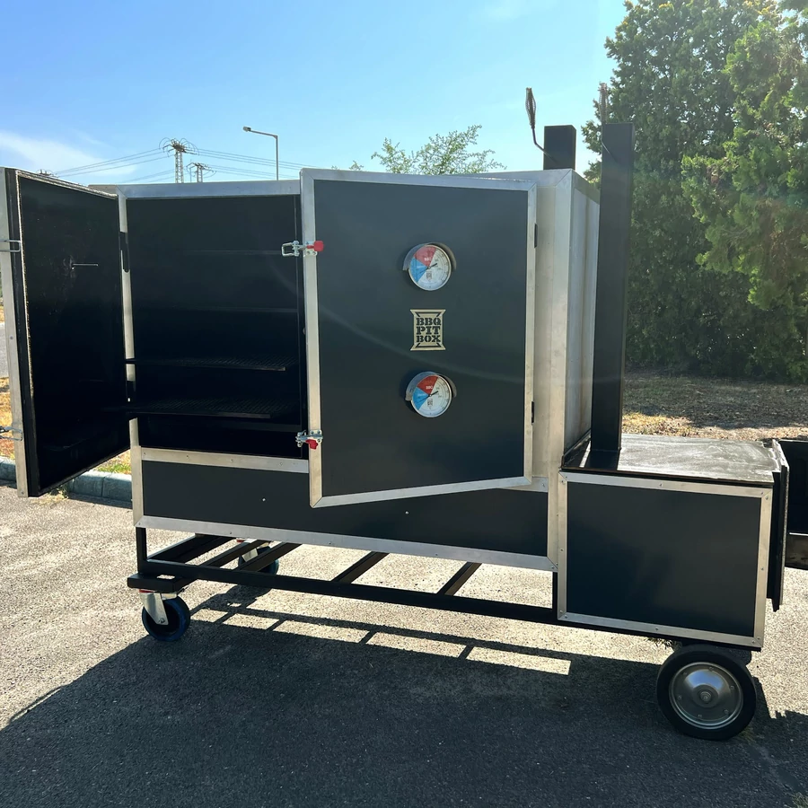 Tulajdonostól közvetlenül eladó ez a csodálatos állapotú, fatüzeléses, duplaajtós, szigetelt szekrényszmóker, BBQ Pit Box WF-OS L-modell.
